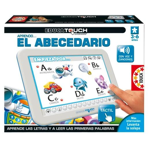 Educa Touch Junior – Aprendo el Abecedario, para aprender las letras y a leer las primeras palabras. Parte de la serie Educa Touch Junior, Aprendo el Abecedario tiene pantalla táctil e incluye voz y canciones para las letras y las palabras.