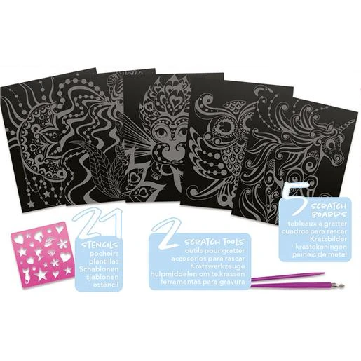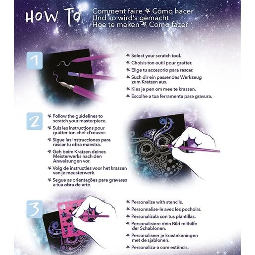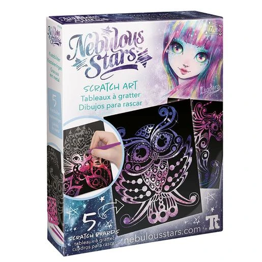 El Educa Borrás – Nebulous Stars – Dibujos Para Rascar Isadora incluye 5 dibujos para rascar, 21 plantillas, 2 accesorios, libro de Isadora e instrucciones. Rasta las zonas indicadas en cada cuadro y personalízalo con las plantillas decorativas. ¡Podrás crear una magnífica galaxia de colores y brillos! Edad recomendada: +7 años.