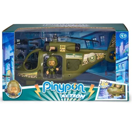 Conduce junto con las figuras militares de Pinypon Action y vuela por las alturas con este helicóptero militar.