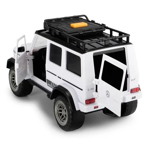 El Mercedes es de color blanco, tiene luz y sonido y viene con rueda libre.