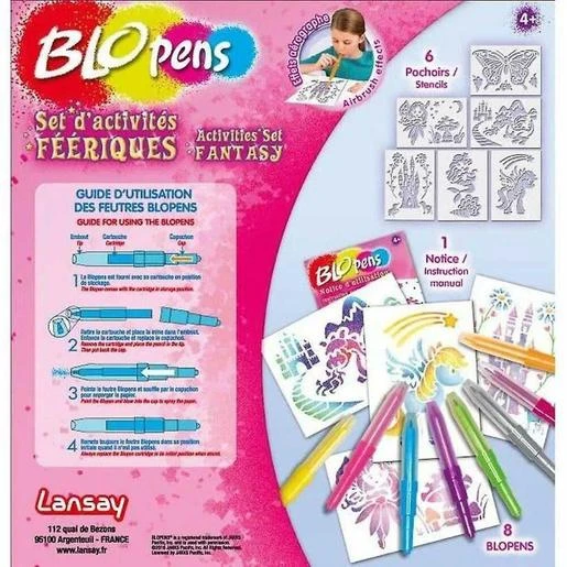 Introduciendo el maravilloso mundo de los Blopens, donde los pequeños artistas pueden dar vida a sus mágicas creaciones. El set de Actividades Hadas y el Kit de artesanato 23519 de Lansay permiten que los niños exploren su creatividad con un efecto aerográfico único y fácil de usar.