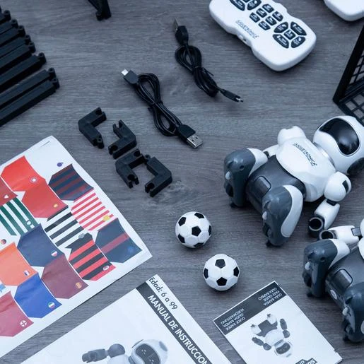 Tú eliges de qué equipo es tu robot, ya que incluye pegatinas con los uniformes de equipos de fútbol para poder personalizarlo completamente a tu gusto.