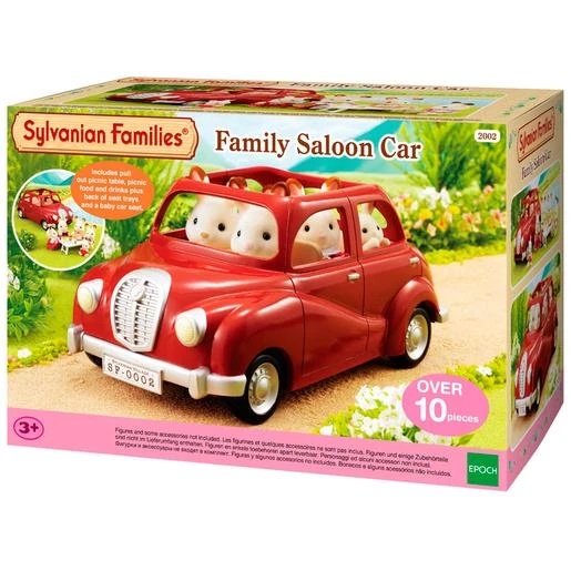 Sylvanian Families – Coche Familiar Rojo ideal para los paseos por la Aldea y los viajes en familia de los habitantes de Sylvanian Families. El coche es estupendo para las familias de cuatro y puede llevar el bebé en la sillita especial del coche para bebés. El parachoques del coche esconde una mesa de picnic. En el maletero se encuentran diferentes accesorios para el picnic como los sándwiches, zumos y bandeja con alimentos. Y para ir de viaje los niños pueden comer y beber en sus bandejas individuales. Las figuras, paredes, ventanas y suelos de la foto no se incluyen. Edad recomendada: +3 años.